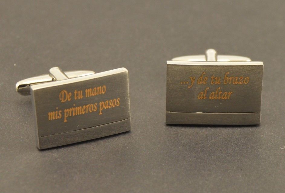 GEMELOS ACERO GRABADOS «DE TUS MANOS MIS PRIMERO PASOS…»