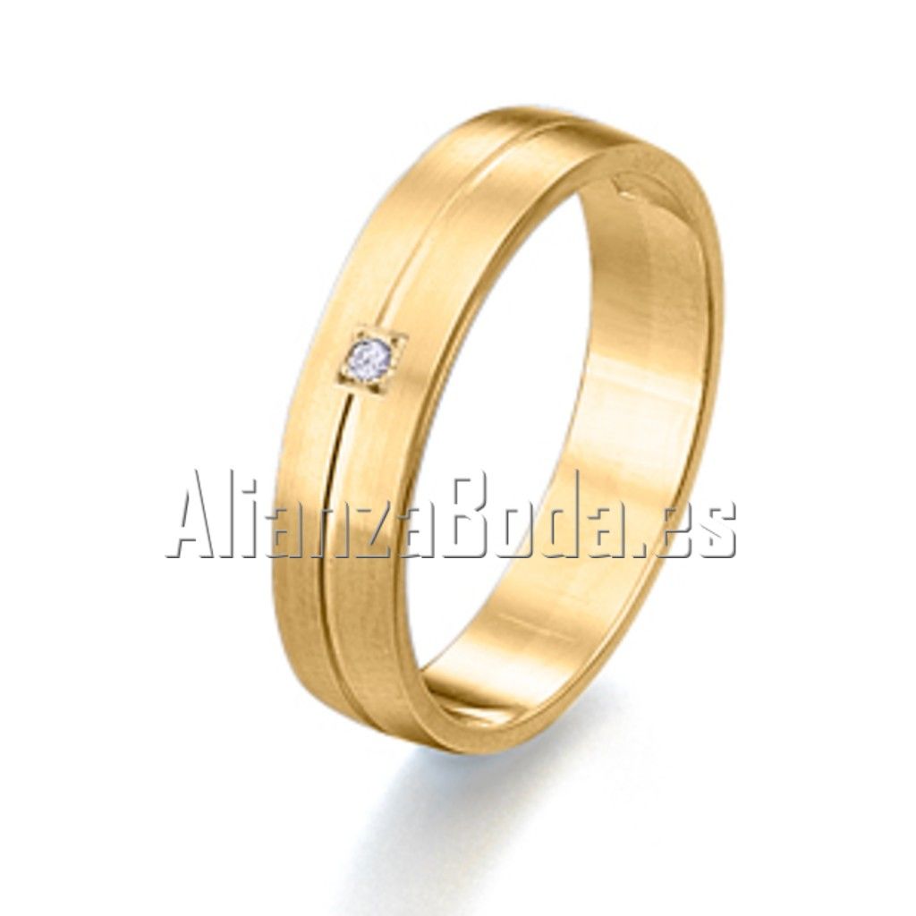 ALIANZA PLANA, LINEA CENTRAL, AMARILLO, MATE S, CON BRILLANTE, ENGASTE CUADRADO